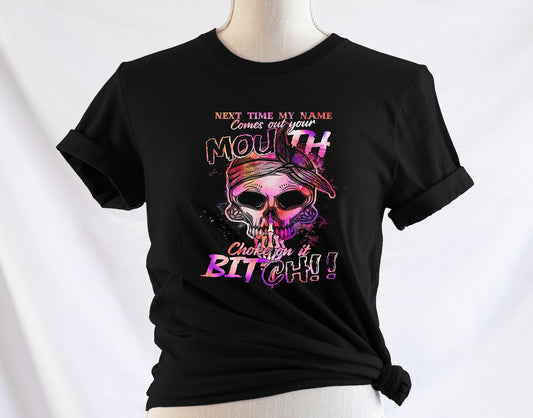 New Release, Next Time My Name Comes Out Your Mouth Choke on it Bitch T shirt, Tshirt, Graphic T's 100% Cotton Black, Tee