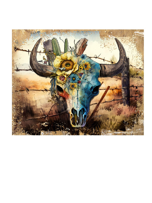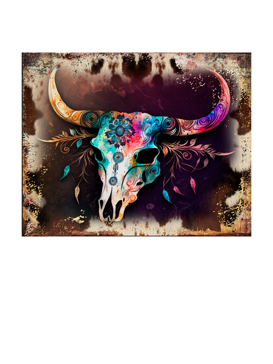 16x20 Painted Cow Skull Western Rustic Cabin Wall Art Canvas Print