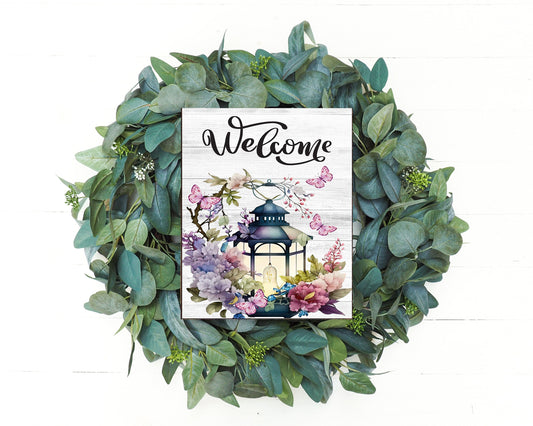 Welcome Floral Lantern Farmhouse Decor Printed Handmade Wood Sign Door Hanger Sign