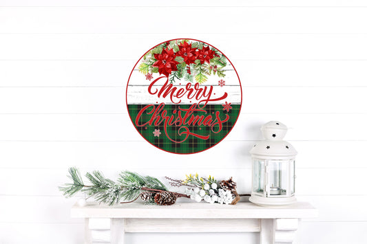 Poinsettia Merry Christmas Round Printed Handmade Wood Sign