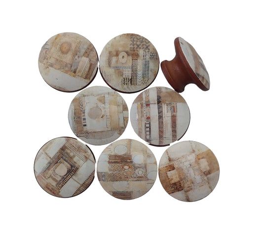 African Collage Cabinet and Drawer Knobs, Set of 8 Drawer Knobs and Pulls, Kitchen Cabinet Knobs