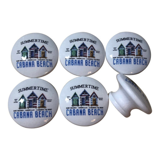 Beach Cabinet Knobs, Drawer Knobs and Pulls, Set of 6 Summertime Cabana Beach Print Wood Cabinet Knobs, Kitchen Cabinet Knobs, Coastal Decor