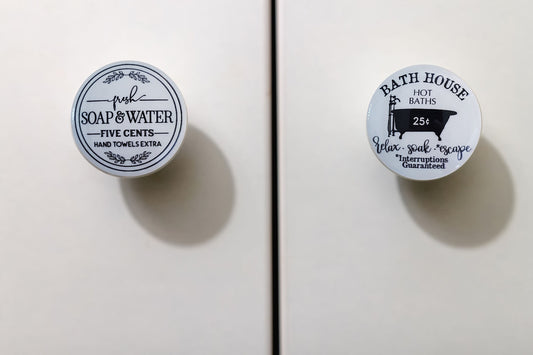 Cabinet and Drawer Knobs, Set of 8 Black and White Bathroom Humor Cabinet Knobs