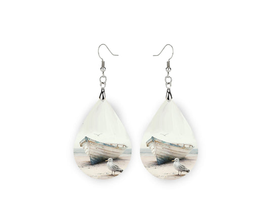 Beached Print Earrings Print Tear Drop Wood Dangle Earrings Hypoallergenic Jewelry