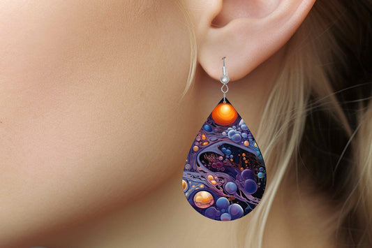 Alien Cytoplasma Print Earrings Print Tear Drop Wood Dangle Earrings Hypoallergenic Jewelry