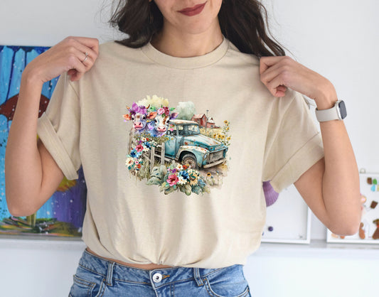 Cows and Old Farm Truck T Shirt, Tshirt, Graphic T's 100% Cotton Tee