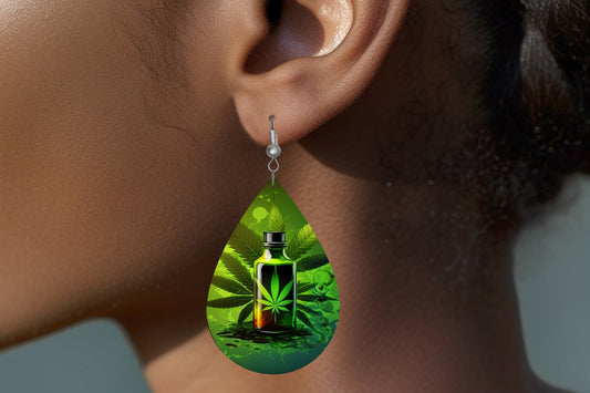 Green Weed Print Earrings Print Tear Drop Wood Dangle Earrings Hypoallergenic Jewelry