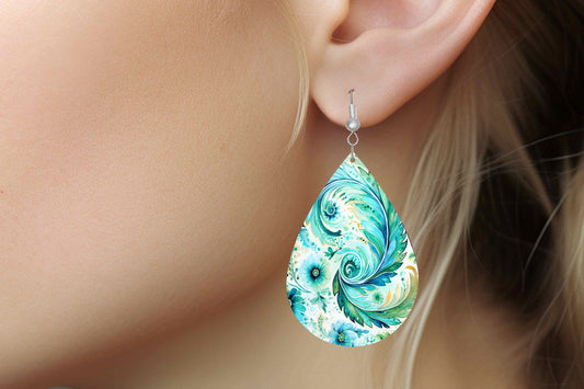 Ocean Waves Paisley Print Earrings Print Tear Drop Wood Dangle Earrings Hypoallergenic Jewelry