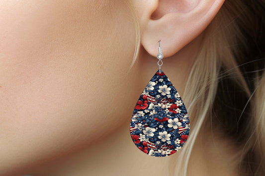 New Release Stars and Stripes Flowers Tear Drop Wood Dangle Earrings Hypoallergenic Jewelry