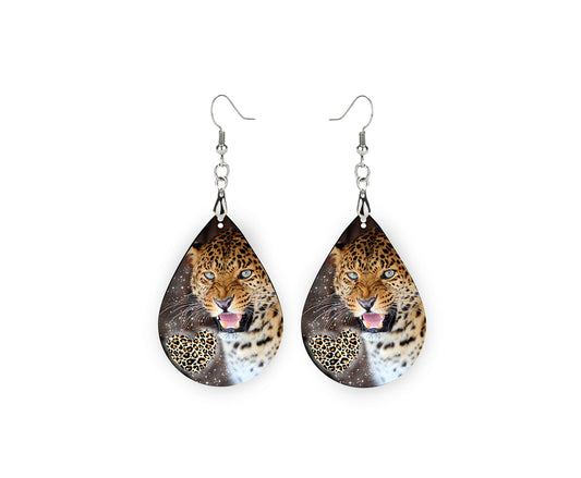 Leopard Earrings Print Tear Drop Wood Dangle Earrings Hypoallergenic Jewelry