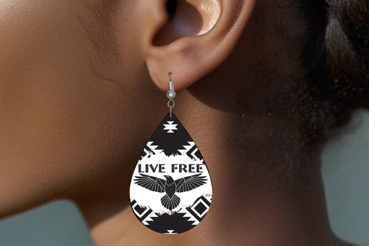 Live Free Eagle Earrings Print Tear Drop Wood Dangle Earrings Hypoallergenic Jewelry