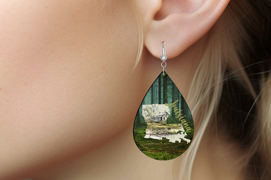 Louisiana Earrings Print Tear Drop Wood Dangle Earrings Hypoallergenic Jewelry