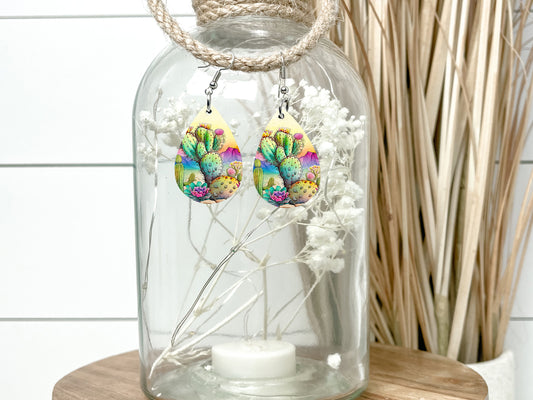 Pastel Desert Earrings Print Tear Drop Wood Dangle Earrings Hypoallergenic Jewelry