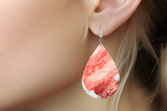 Peach Agate Earrings Print Tear Drop Wood Dangle Earrings Hypoallergenic Jewelry