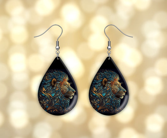 Lion Art Earrings Print Tear Drop Wood Dangle Earrings Hypoallergenic Jewelry