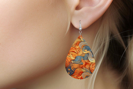 Prevailing Winds Print Earrings Print Tear Drop Wood Dangle Earrings Hypoallergenic Jewelry