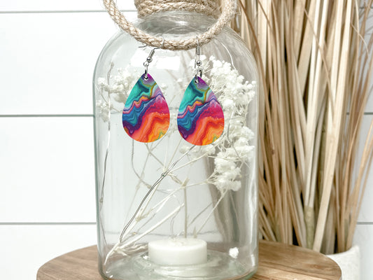 Rainbow Marble Print Earrings Print Tear Drop Wood Dangle Earrings Hypoallergenic Jewelry