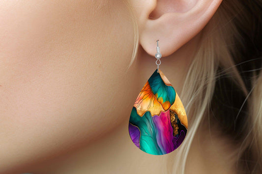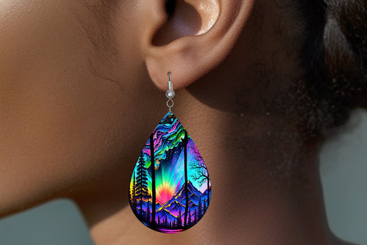 Northern Lights Sunset Print Earrings Print Tear Drop Wood Dangle Earrings Hypoallergenic Jewelry