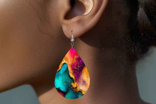 New Release Marble Flow Tear Drop Wood Dangle Earrings Hypoallergenic Jewelry