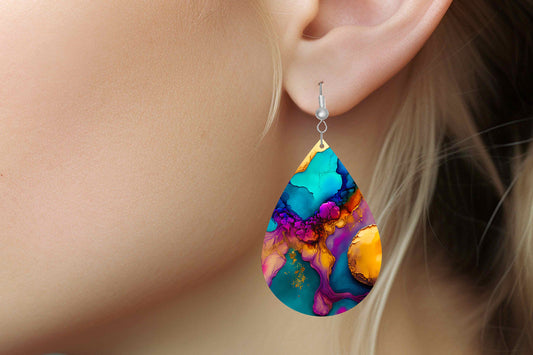 New Release Maddie Marble Tear Drop Wood Dangle Earrings Hypoallergenic Jewelry
