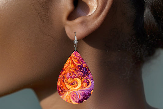 New Release Orange Swirly Tear Drop Wood Dangle Earrings Hypoallergenic Jewelry