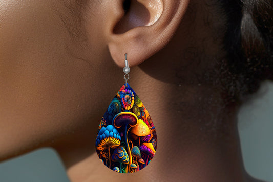 New Release Mushrooms Tear Drop Wood Dangle Earrings Hypoallergenic Jewelry
