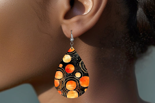New Release Orange Circles Tear Drop Wood Dangle Earrings Hypoallergenic Jewelry