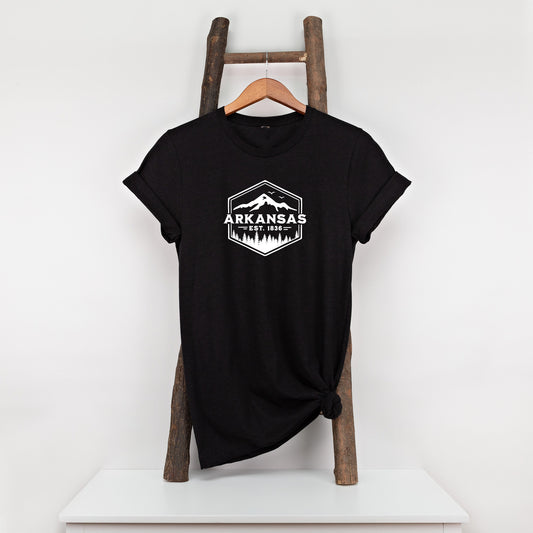 Arkansas Badge, T Shirt, Tshirt, Graphic T's 100% Cotton Black White or Gray, Tee