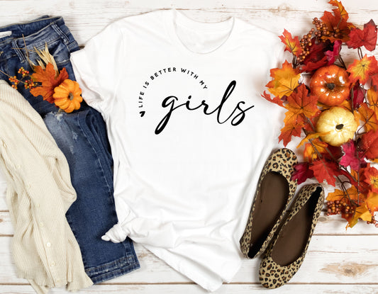 Life is Better with my Girls, T Shirt, Tshirt, Graphic T's 100% Cotton Black White or Gray, Tee