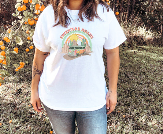 Adventure Awaits Hippie Van Tshirt, Love by Moonlight, Celestial Sun and Moon, Graphic T's 100% Cotton Black White or Gray