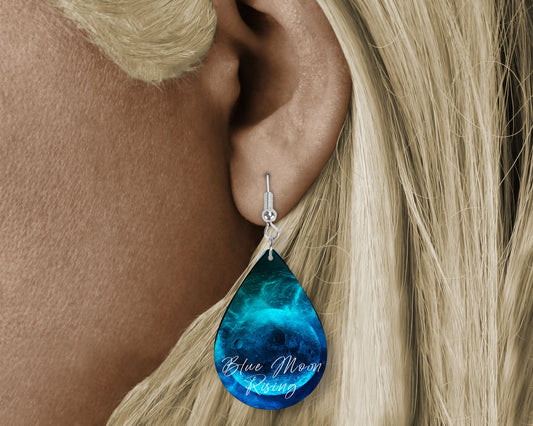 Set of Blue Moon Rising Tear Drop Dangle Printed Earrings