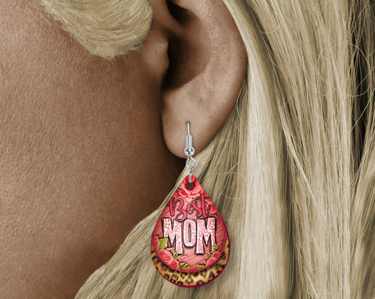 Set of Best Mom Western Tear Drop Dangle Printed Earrings