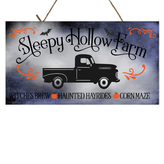 Letrero de madera hecho a mano impreso de Halloween de Sleepy Hollow Farm