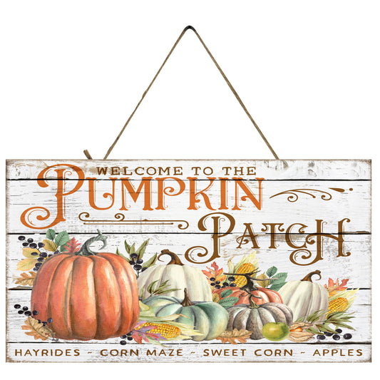Bienvenido al letrero de madera hecho a mano impreso de Pumpkin Patch Fall