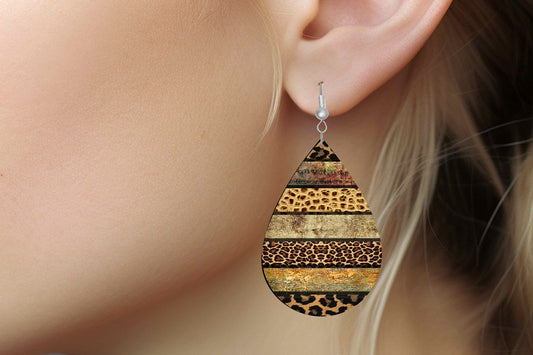 Western Stripes Print Tear Drop Wood Dangle Earrings Hypoallergenic Jewelry