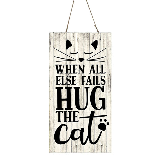 Cuando todo lo demás falla abraza al gato vertical impreso hecho a mano signo de madera