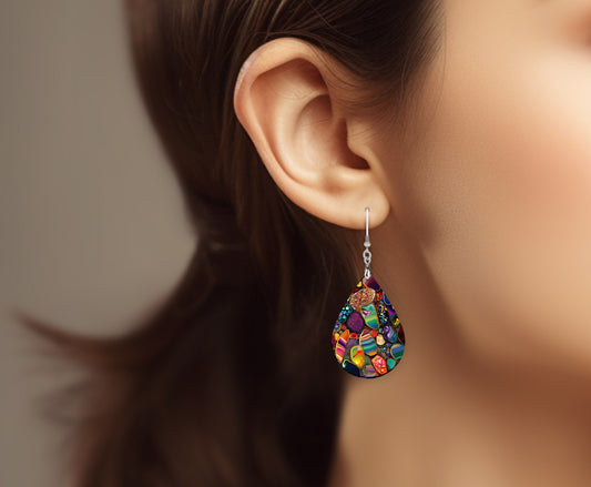 Alien Galaxy Print Earrings Print Tear Drop Wood Dangle Earrings Hypoallergenic Jewelry