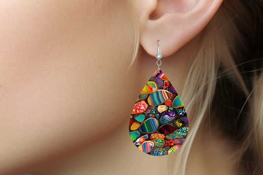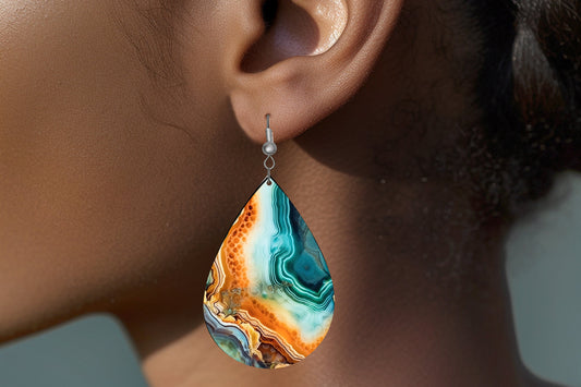Agate Stone Print Earrings, Teardrop Dangle Printed Earrings Jewelry Handmade