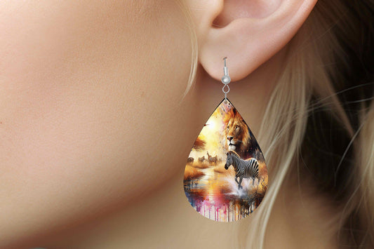 African Safari Print Earrings Print Tear Drop Wood Dangle Earrings Hypoallergenic Jewelry