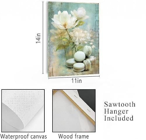 11x14 Mint Macarons and Flowers Wall Art Canvas Print