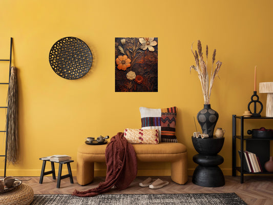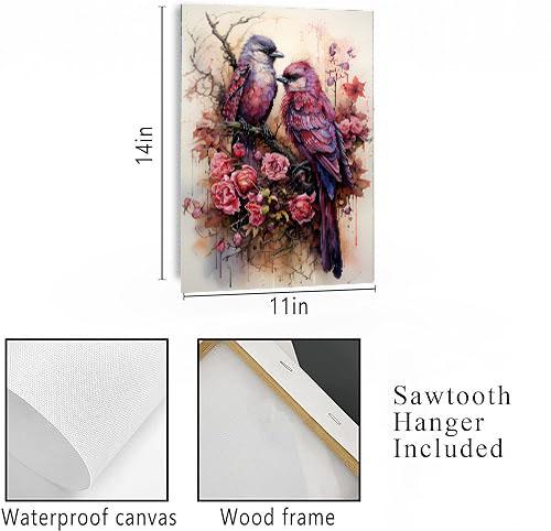 11x14 Orange Floral and Bird Wall Art Canvas Print