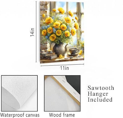 11x14 Yellow Flowers on Windowsill Wall Art Canvas Print