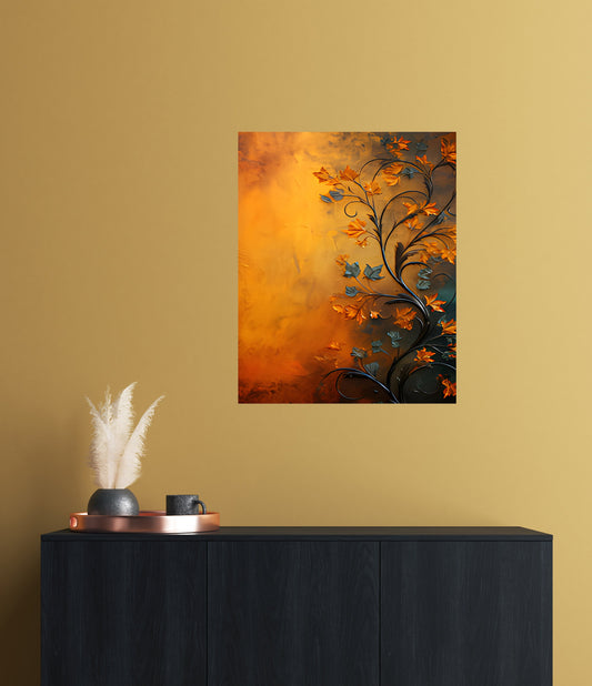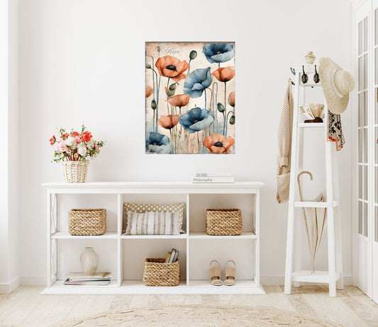 16x20 Peach and Blue Floral Wall Art Canvas Print