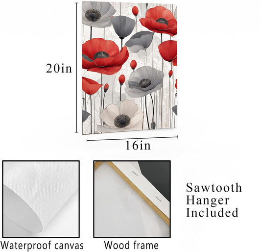 16x20 Red and Gray Poppies Wall Art Canvas Print
