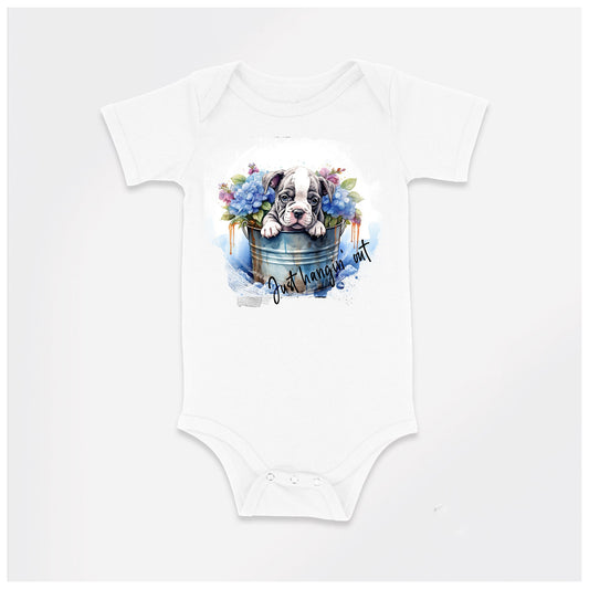Baby Bodysuit, Bulldog Just Hanging Out One Piece Baby Suit, Baby Gift, Long / Short Sleeve, 0-18 Months size