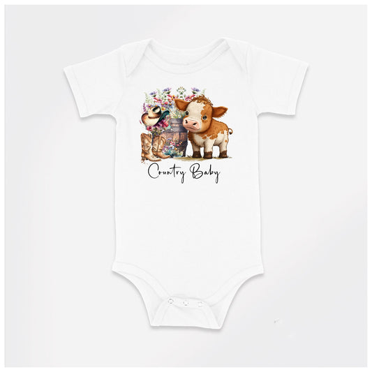 Baby Bodysuit, Country Baby Cow One Piece Baby Suit, Baby Gift, Long / Short Sleeve, 0-18 Months size