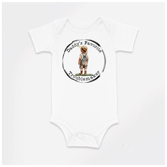 Baby Bodysuit, Daddy's Favorite Troublemaker One Piece Baby Suit, Baby Gift, Long / Short Sleeve, 0-18 Months size