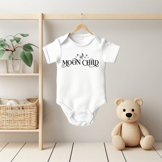 Baby Bodysuit, Moon Child One Piece Baby Suit, Baby Gift, Black or White, 0-18 Months size