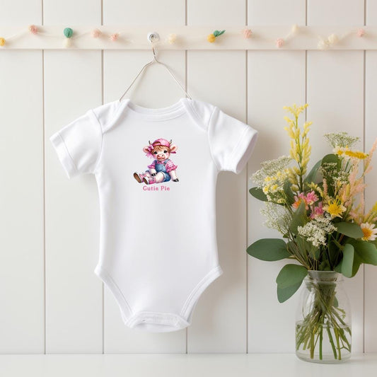 Baby Bodysuit, Cutie Pie Pink Highland Cow One Piece Baby Suit, Baby Gift, Long / Short Sleeve, 0-18 Months size