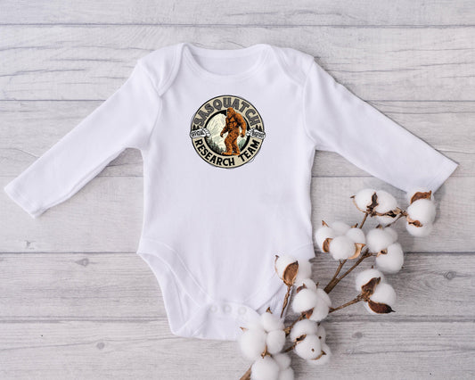 Baby Bodysuit, Sasquatch Research Team One Piece Baby Suit, Baby Gift, Long / Short Sleeve, 0-18 Months size